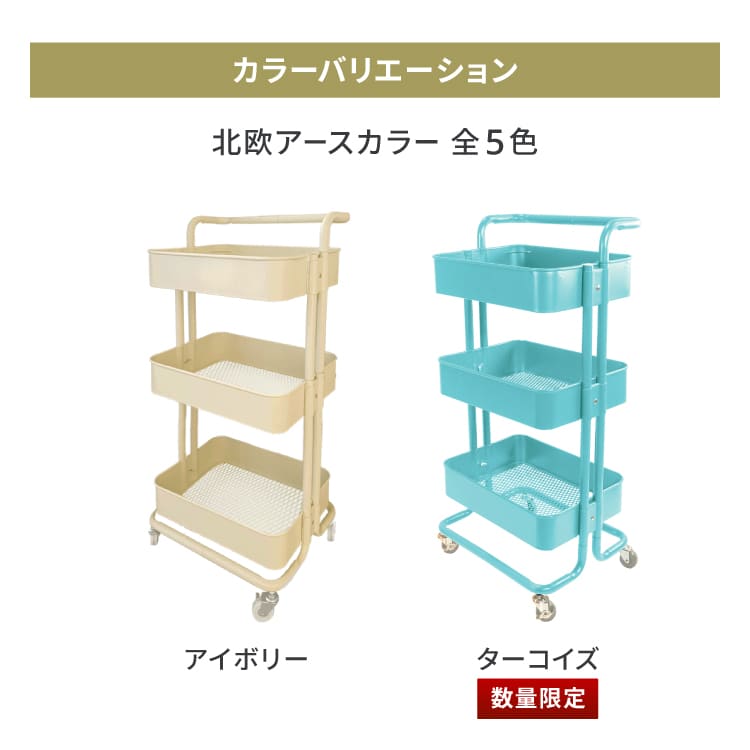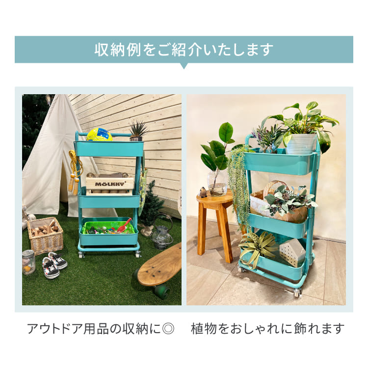 収納ラックやチェストを置く場所がなくても、キャスター付きワゴンなら移動が簡単です。