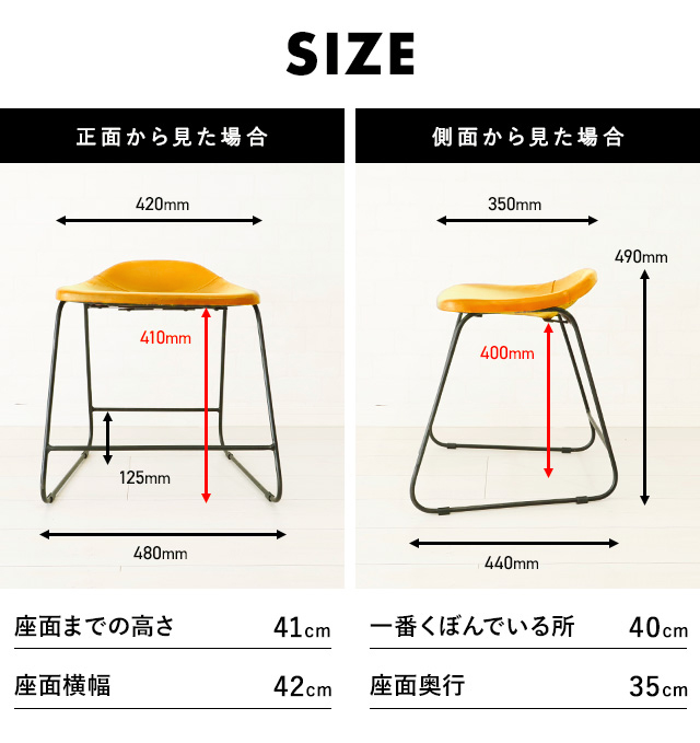 座面の高さ:前方:41cm 後方(一番くぼんでいる所):40cm