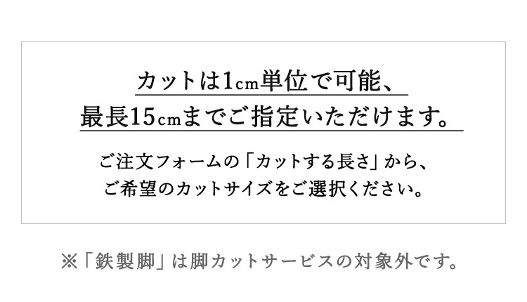 脚カットをご希望される場合、ご購入1台につき、税込2,000円のカット料金が必要となりますのでご注意ください。