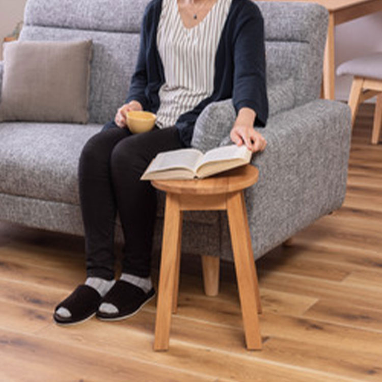 キッチンや玄関で少し腰掛けるための椅子として、また植物や小物置きとしてしても利用できます。