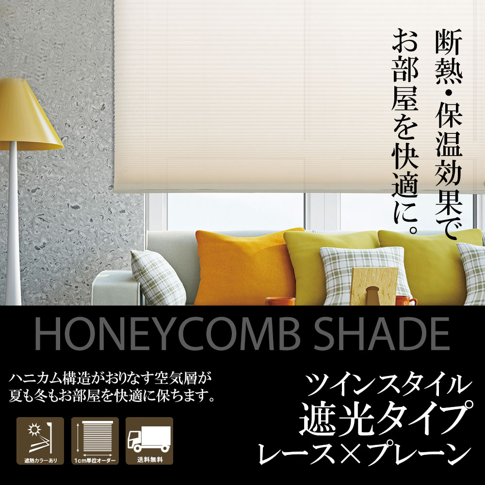 【国産】ハニカムシェード ツインスタイル(レース×遮光プレーン)