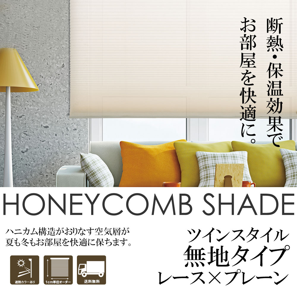 【国産】ハニカムシェード ツインスタイル(レース×無地プレーン)