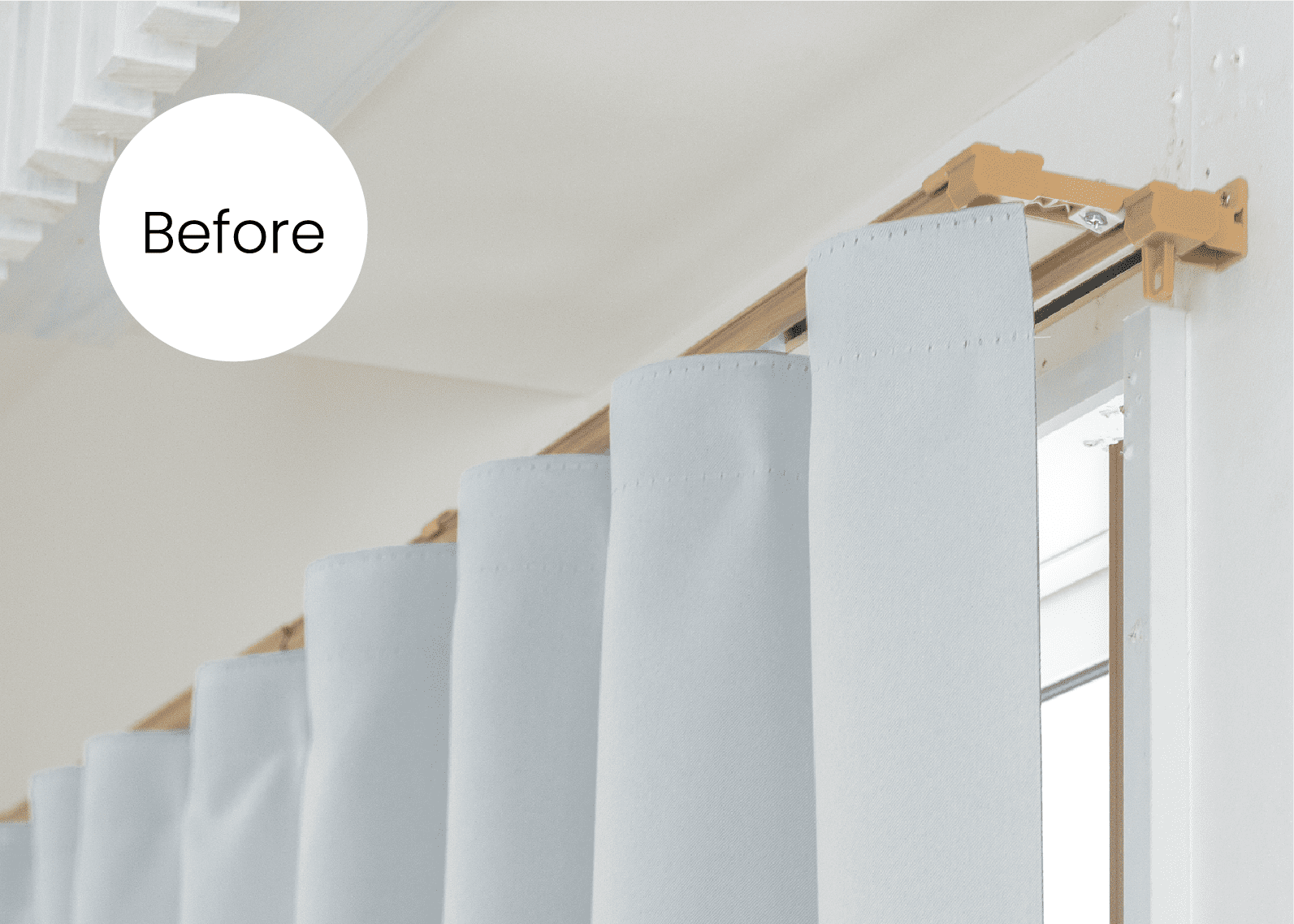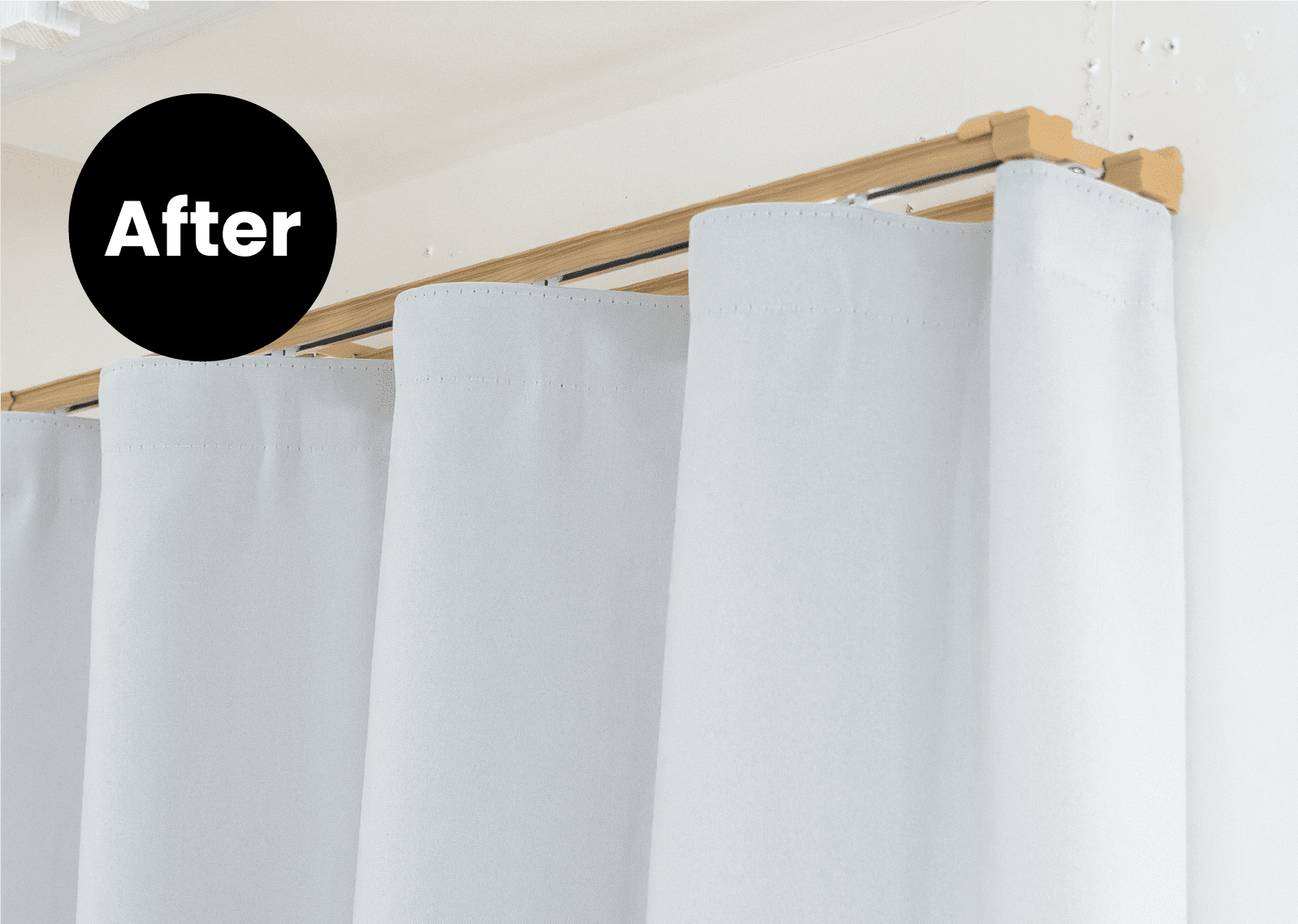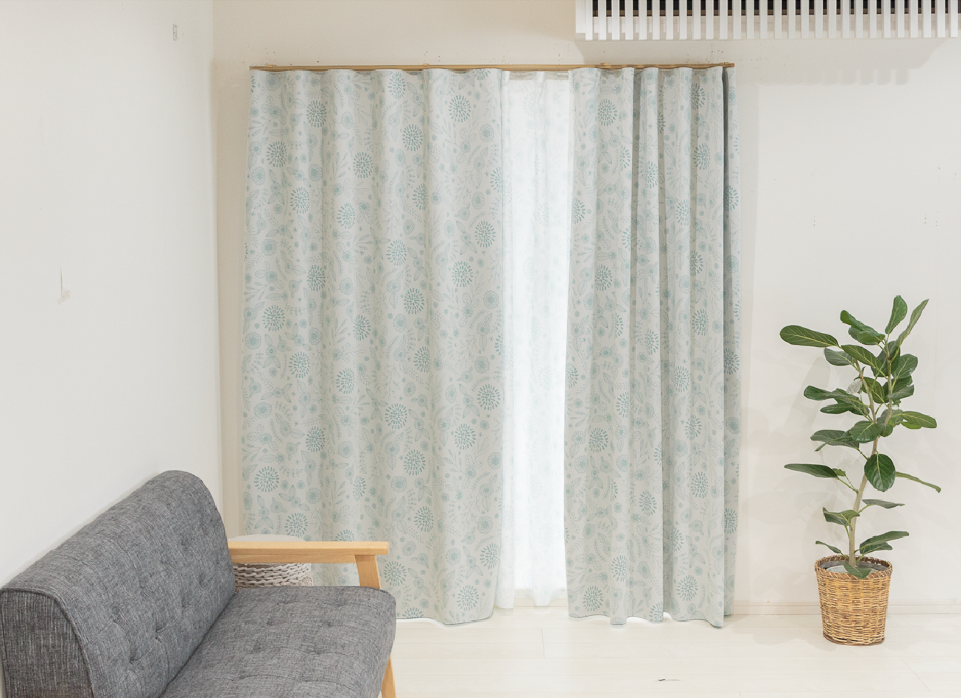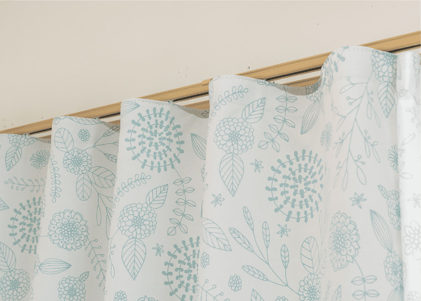 - ●リホームオリジナルのフィンランドスタイルは従来のカーテンのように上部にタックがないため生地幅に十分な余裕があります。