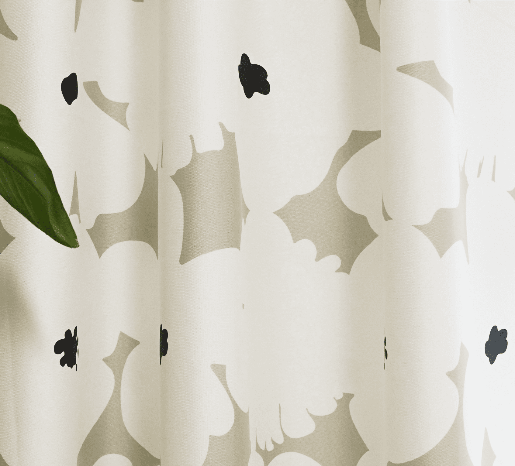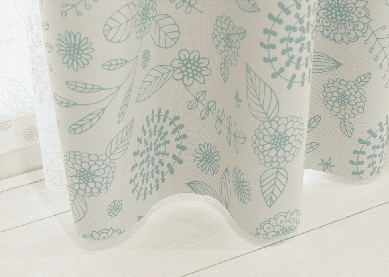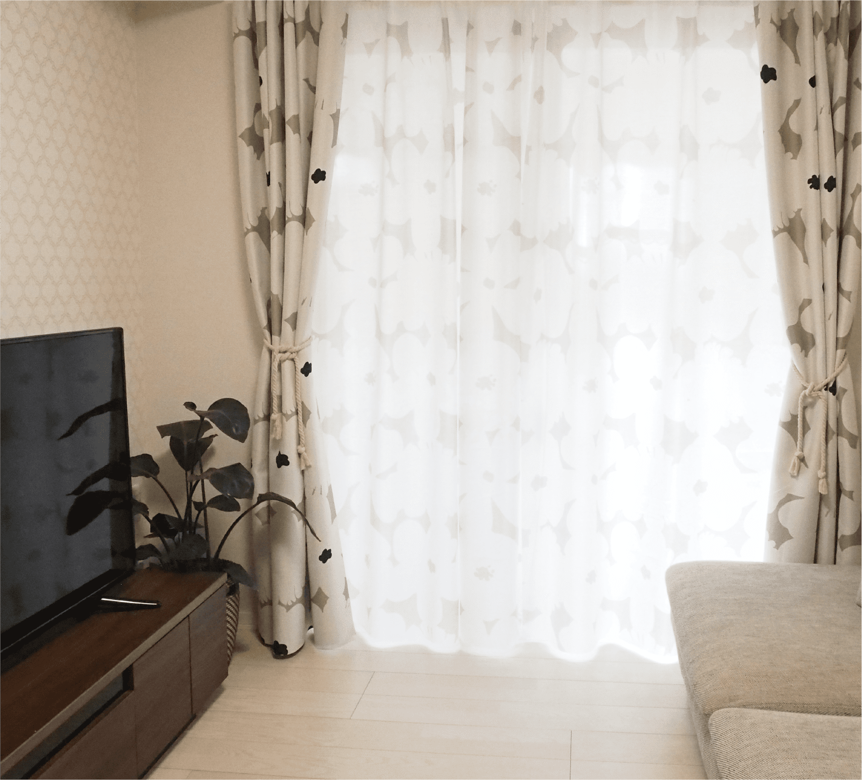 そんなあなたにおすすめなのがこちらのミーナベージュ!グレージュ系のアースカラーなのでとても部屋なじみがよく、お部屋がとても華やかになります。厚地カーテンとレースカーテンお揃いの大胆な花柄がお部屋のアクセントになり、気分も明るくなりますよ!