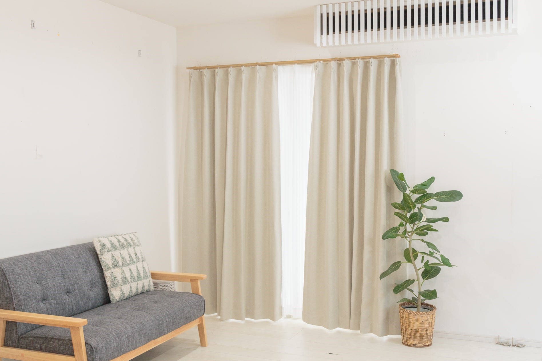 お部屋の室温を快適に保つ厚地カーテン×レースをご紹介。